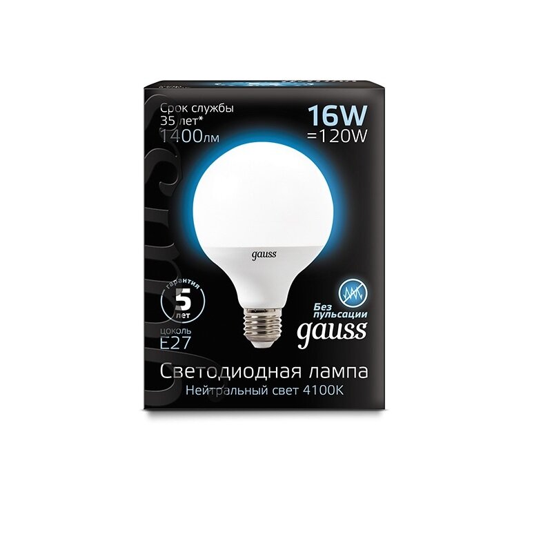 Лампа светодиодная Gauss G95 E27 16W 1400lm 4100K