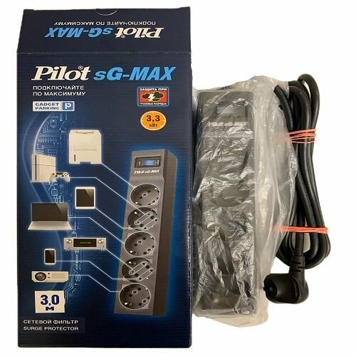 Сетевой фильтр Pilot sG-MAX 7 метров, 5 двойных розеток стандарта Gadget parking, черный, 15А, 3.3 кВт (159)