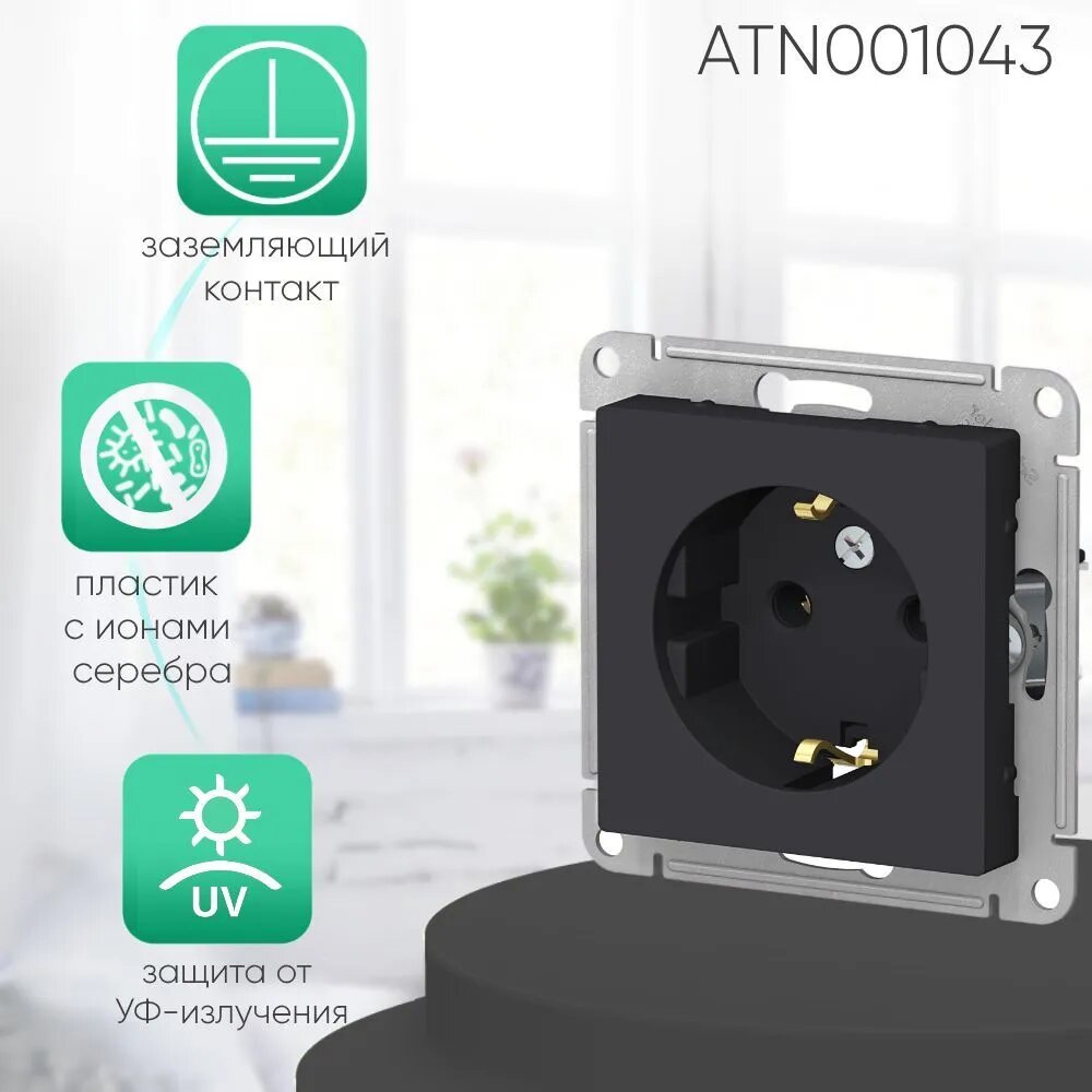 Розетка Schneider Electric AtlasDesign ATN001043 черная с заземлением 5шт механизм розетки Шнайдер Электрик Атлас Дизайн карбон антрацит