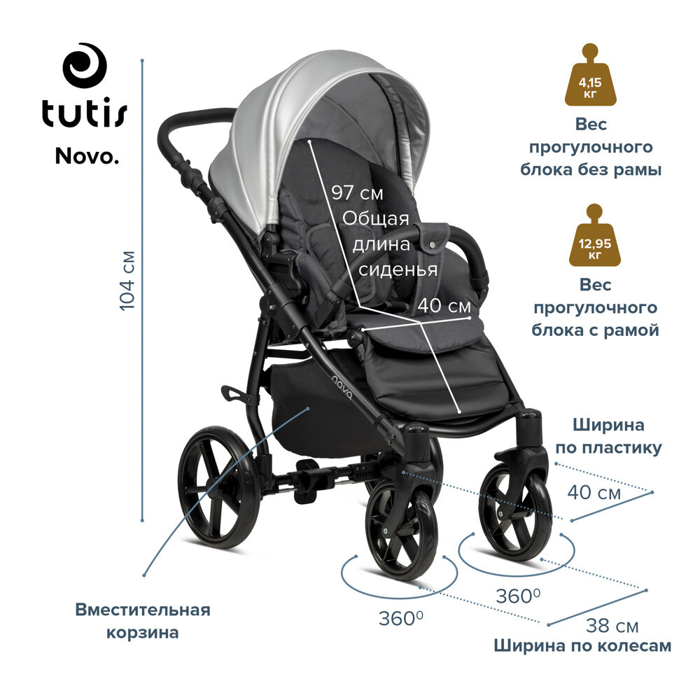 Коляска 2 в 1 Tutis Novo Caviar