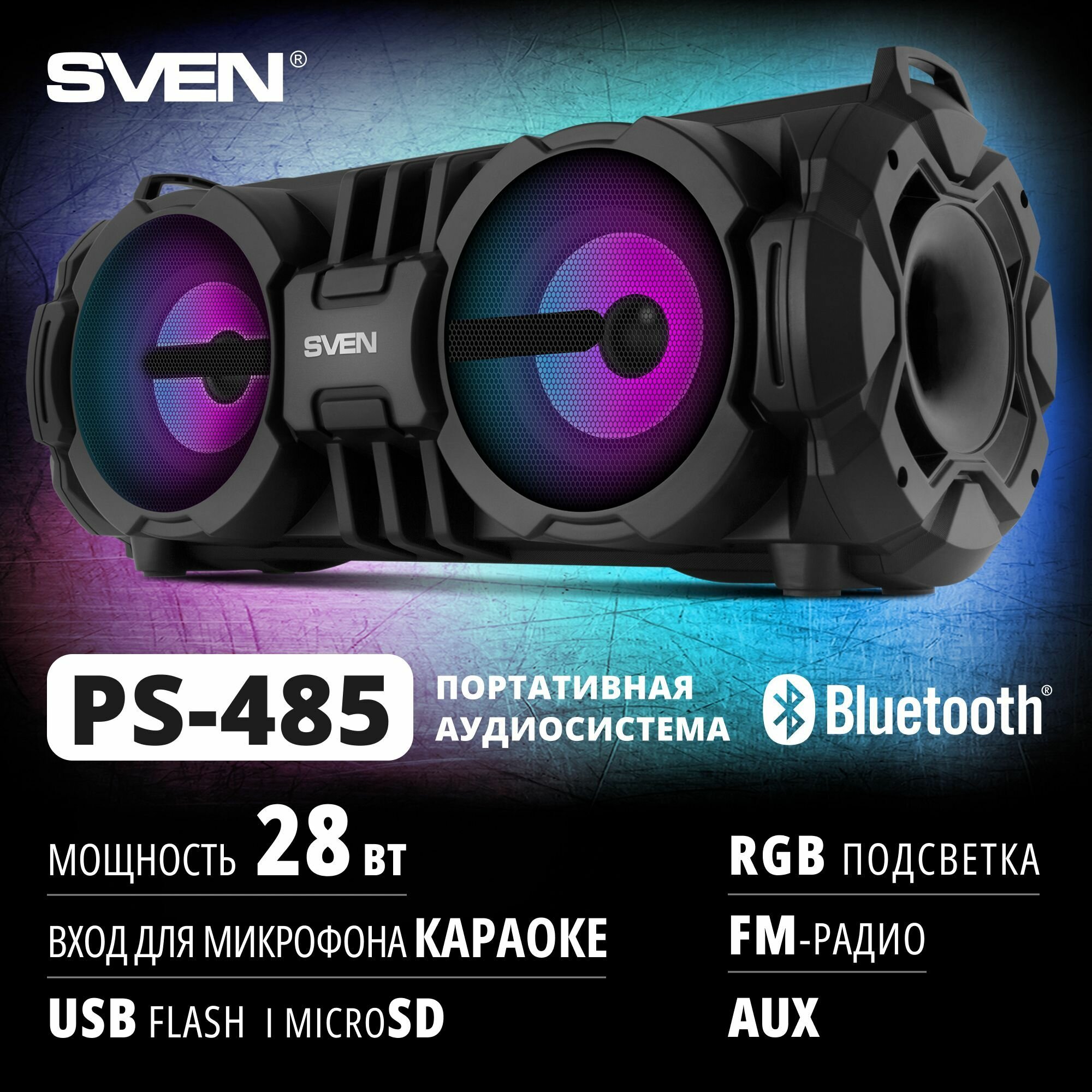Портативная колонка Sven PS-485, 28Вт, черный [sv-017408]