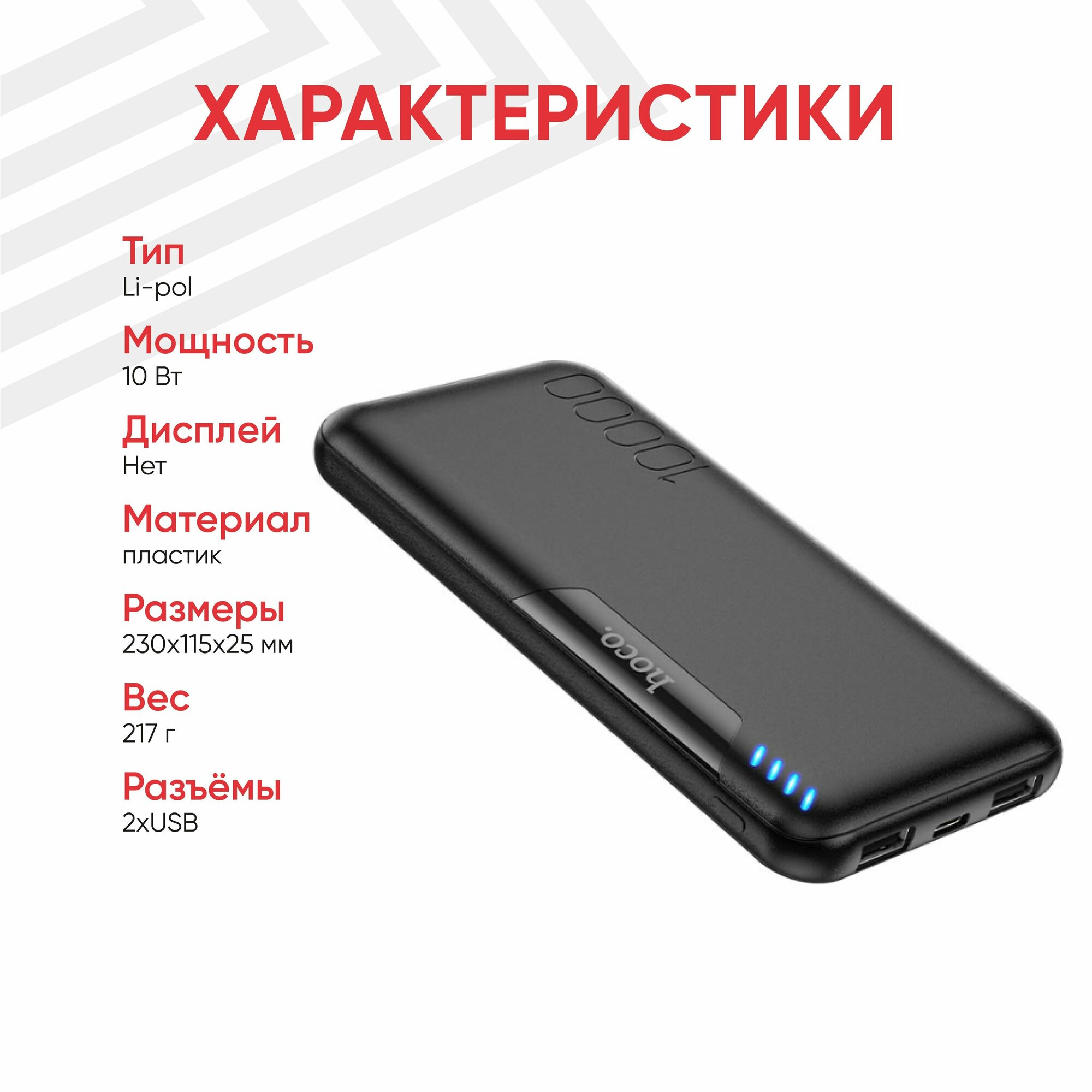Внешний аккумулятор 10000 mAh J82 HOCO черный