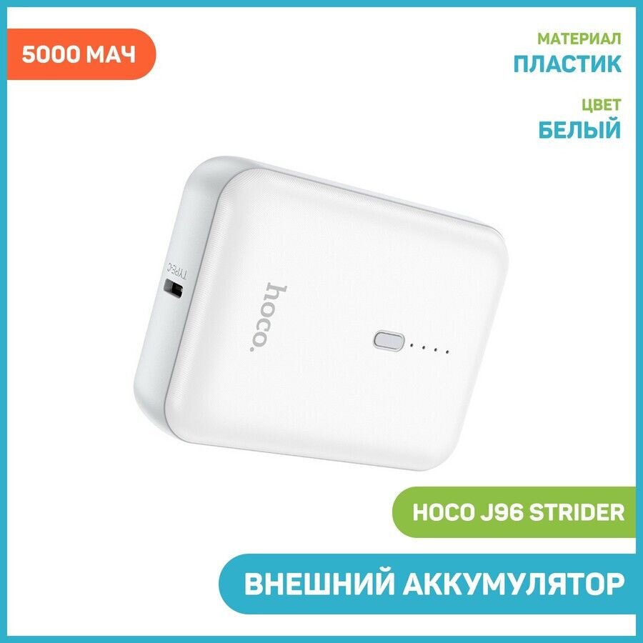 Портативный аккумулятор Hoco J96 Strider, 5000mAh, белый