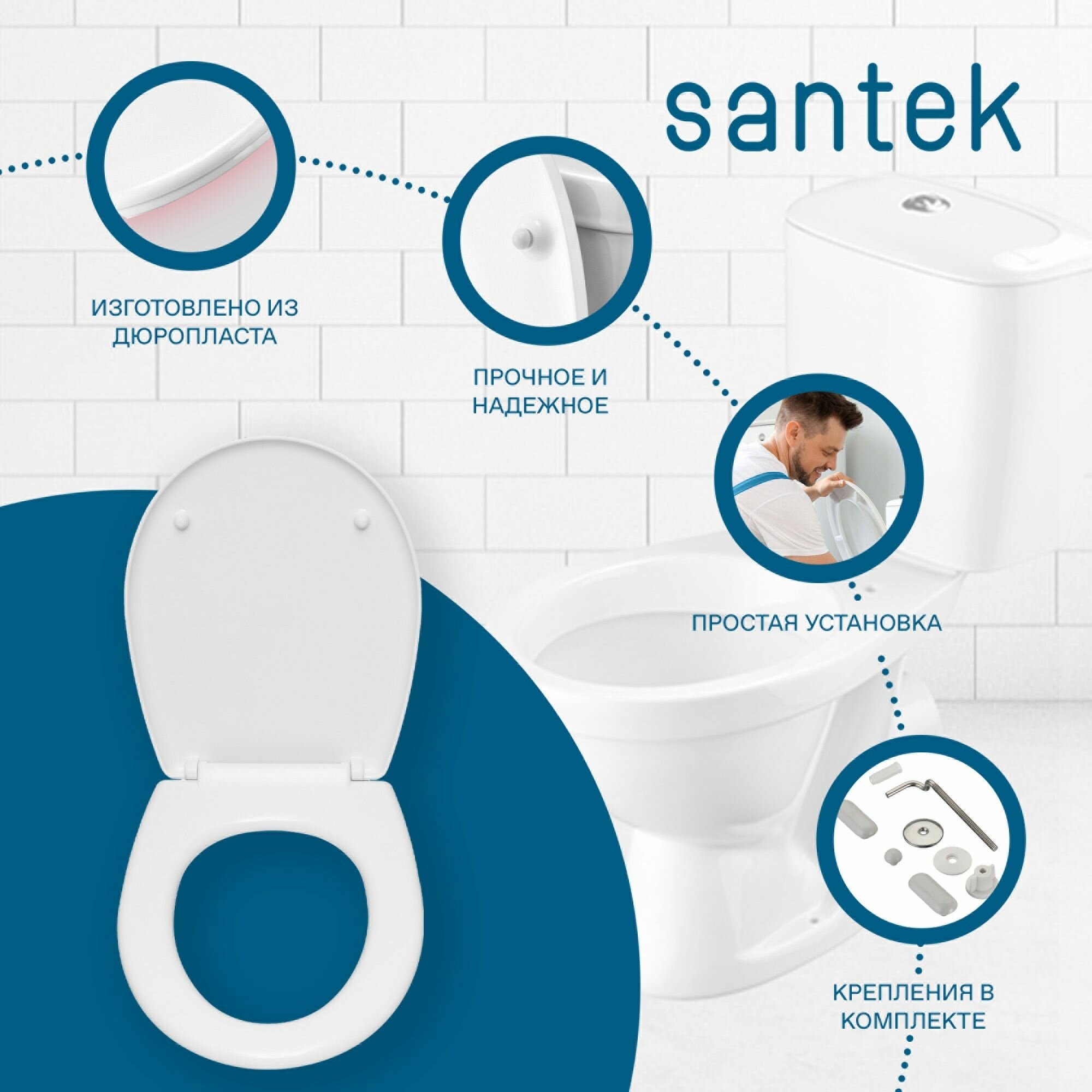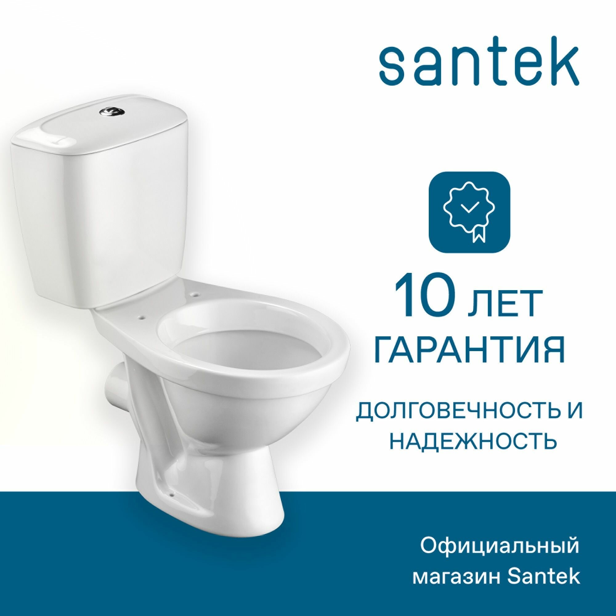 Унитаз Santek паллада 2-реж. арматура, сиденье дюропласт, метал крепеж (WH302376)