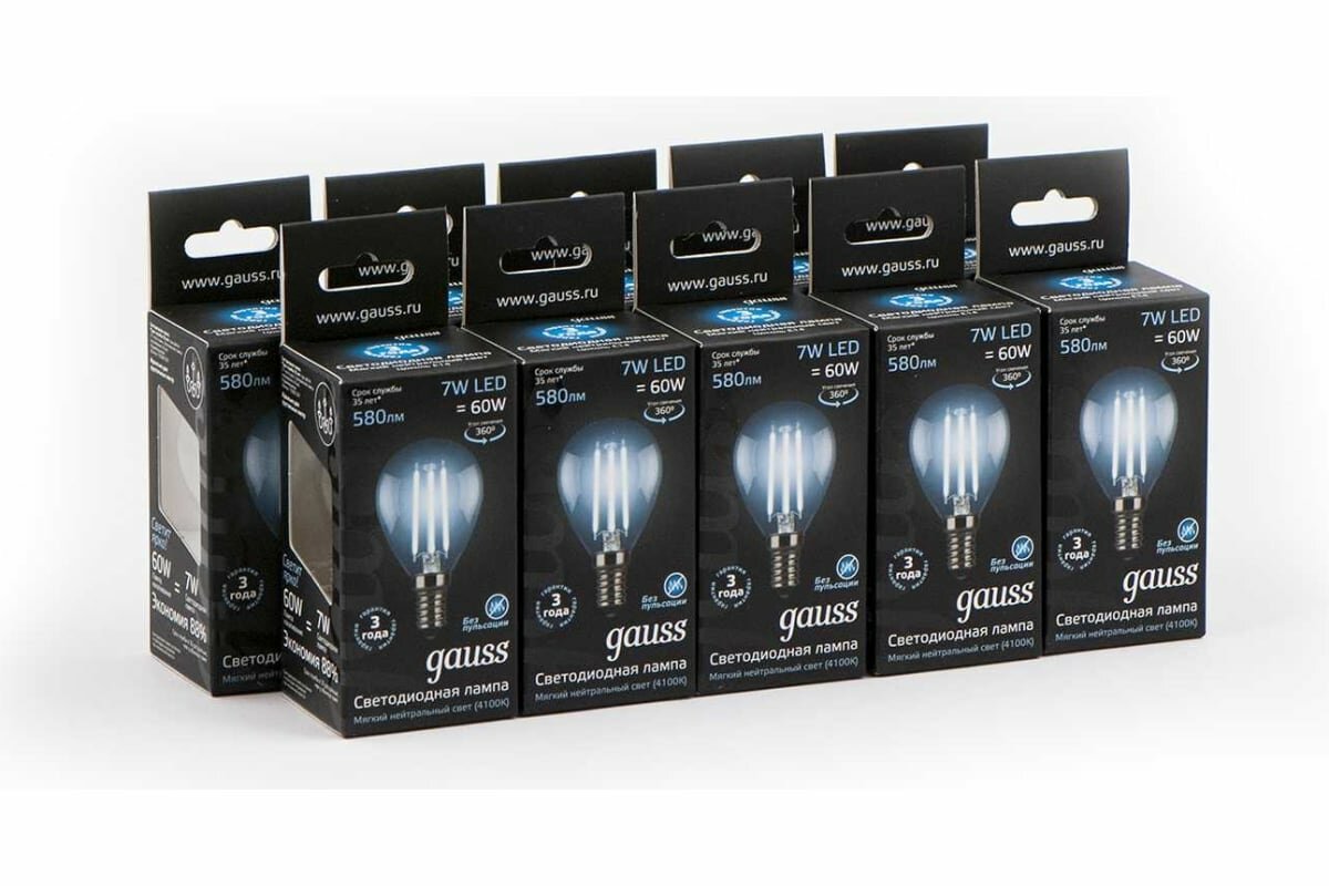 Лампа GAUSS светодиодная Filament 7Вт цок.:E14 шар 220B 4100K св.свеч.бел.нейт. (упак.:1шт) (105801207-S)