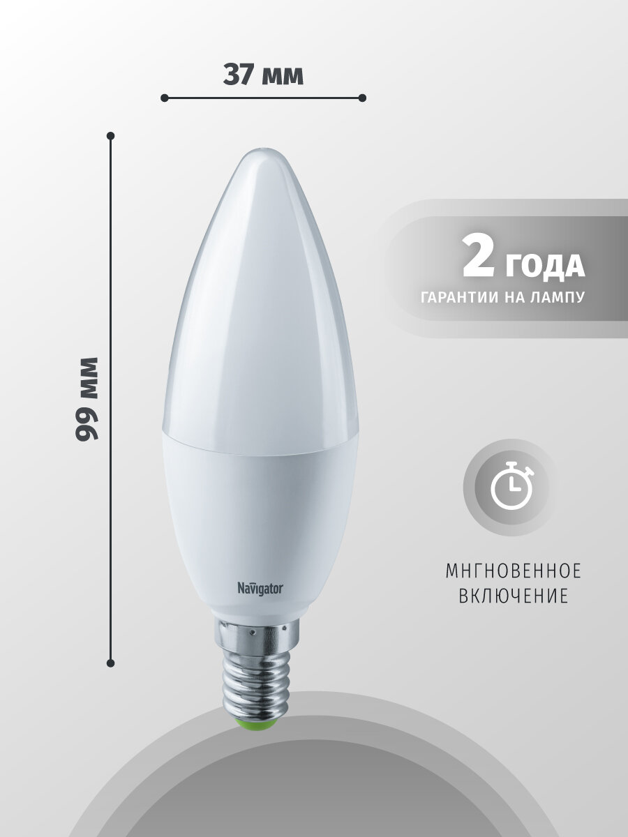 Лампа светодиодная Navigator 94 482, 5 Вт, свеча, Е14, дневной свет 4000К, упаковка 10 шт. интересное: