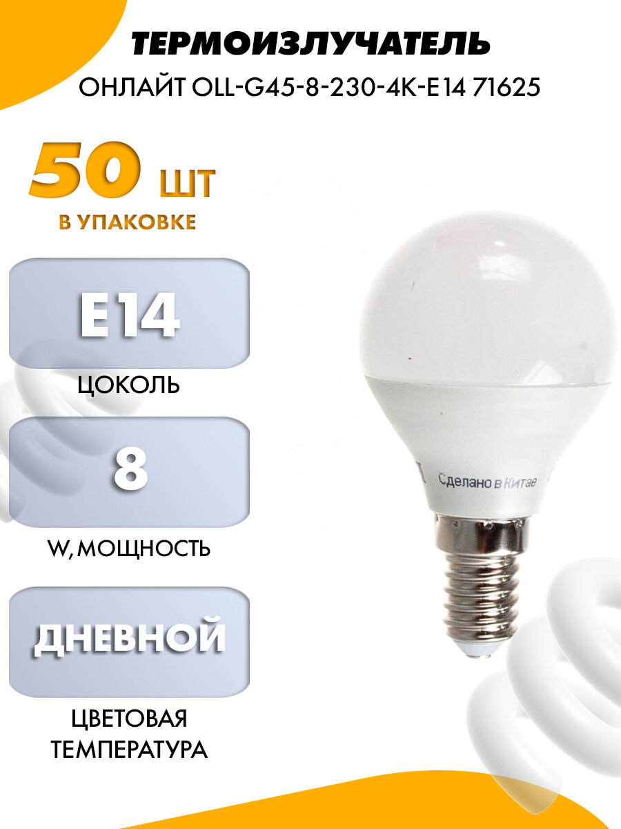 Лампа светодиодная 71 625 OLL-G45-8-230-4K-E14 8Вт шар 4000К E14 600лм 176-264В бел. Онлайт 71625 (8шт.в упак.)