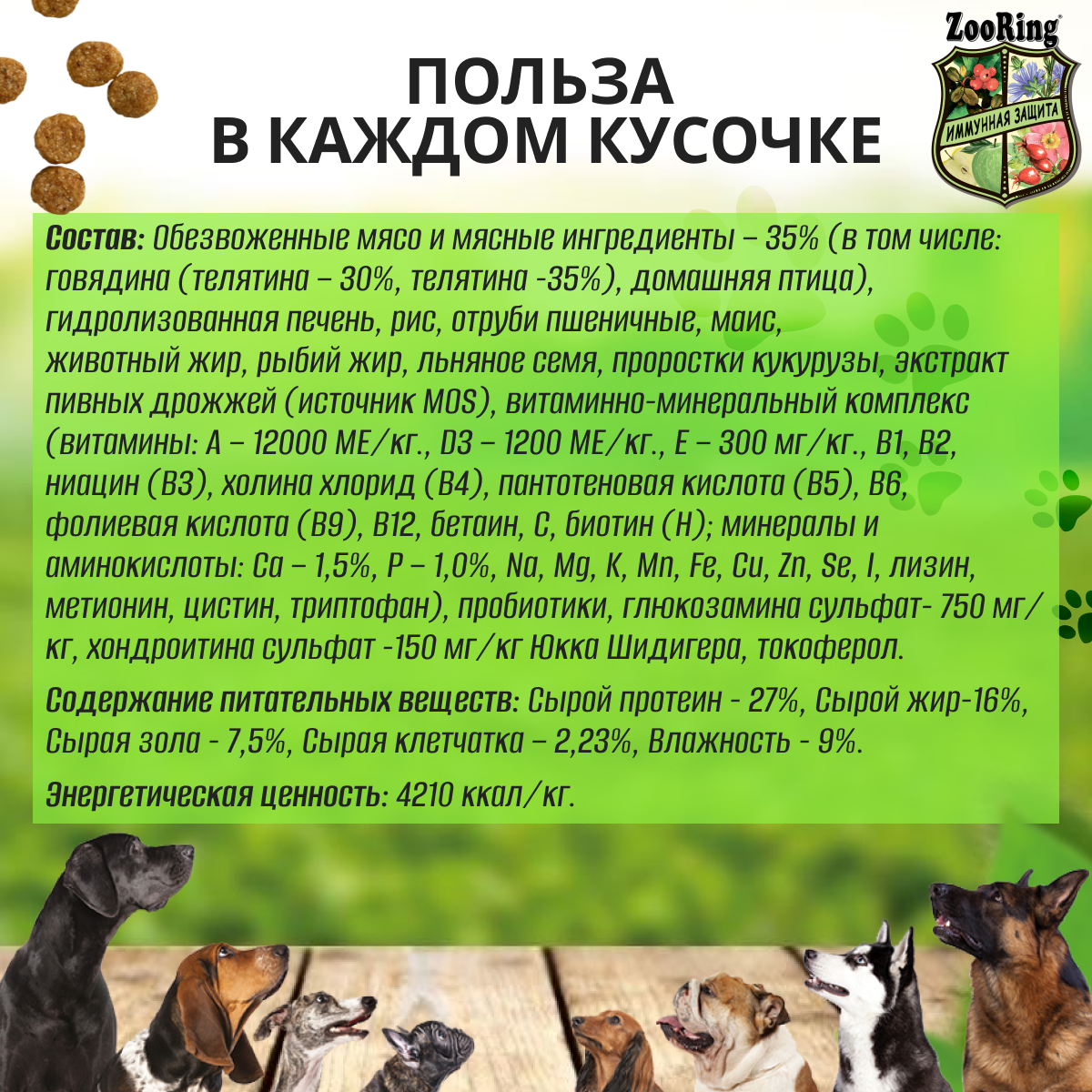 | Энергетическая ценность | 4210 ккал/кг |