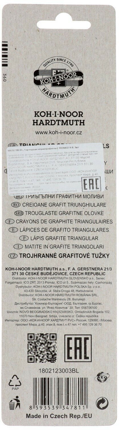 Набор карандашей чернографитных разной твердости 3 штуки Koh-I-Noor TEENAGE, H-B, в блистере, 1 набор