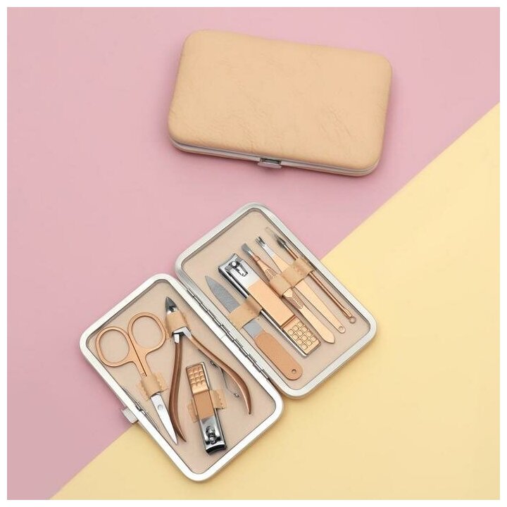 Купить Набор маникюрный, 8 предметов, в футляре, цвет бежевый