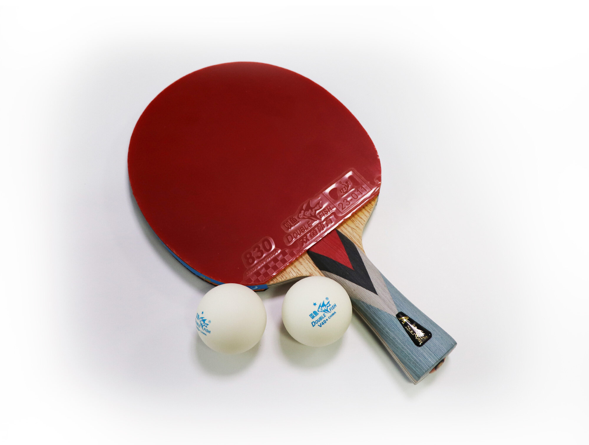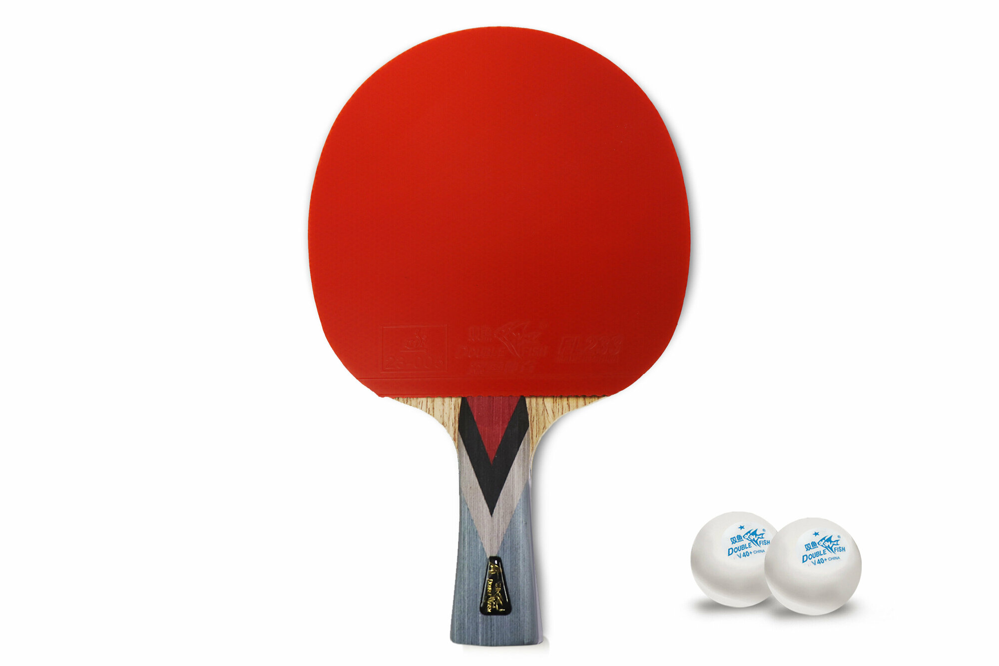Ракетка для н/т Double Fish, 6A+C, для подвин.,ITTF Appr.,накл. 2,1 мм, конич. ручка+ 2 мяча V40+мм