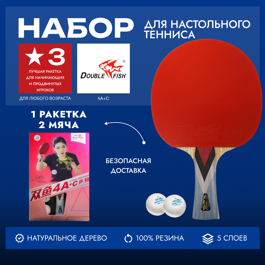 Ракетка для настольного тенниса Double Fish 4A+C (ракетка + 2 мяча) 4 звезды