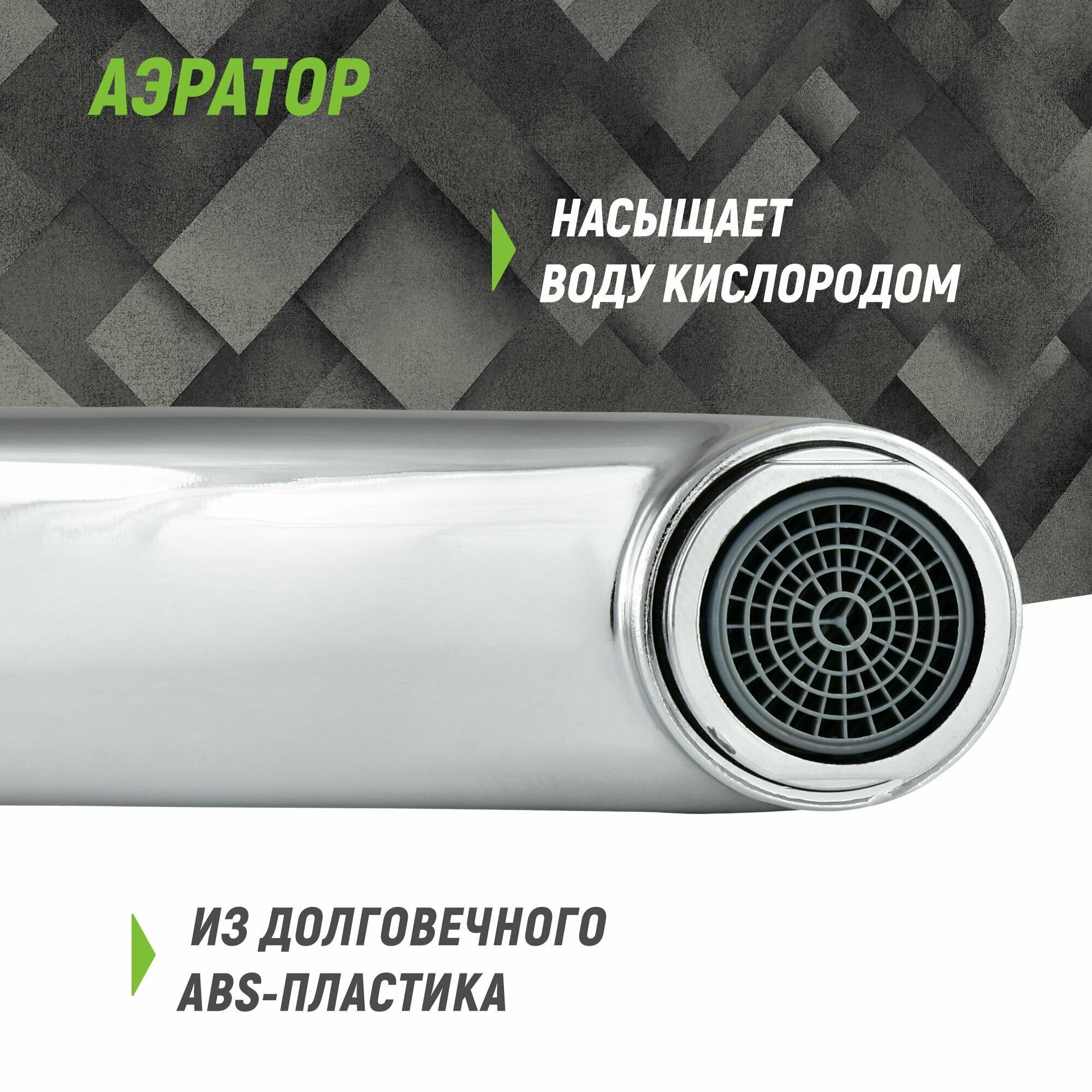 | Особенности | S-образные эксцентрики / аэратор / держатель душевой лейки / поворотный излив |
