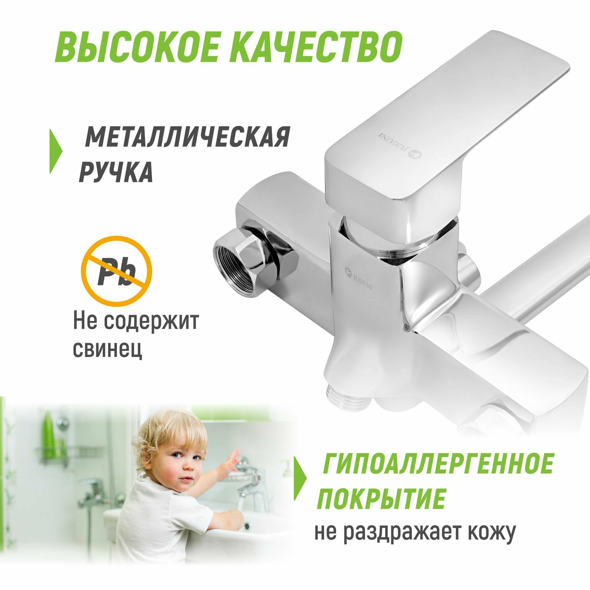 Смеситель для ванны с длинным изливом, шланг 150 см, лейка, Juguni 0402.135 интересное: