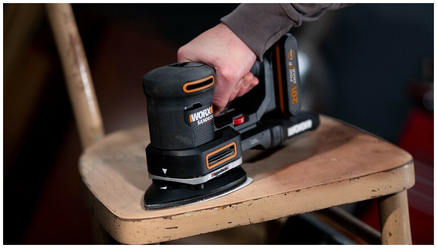 Виброшлифмашина аккумуляторная WORX WX820 20В с АКБ 2,0 А.ч и ЗУ в кейсе