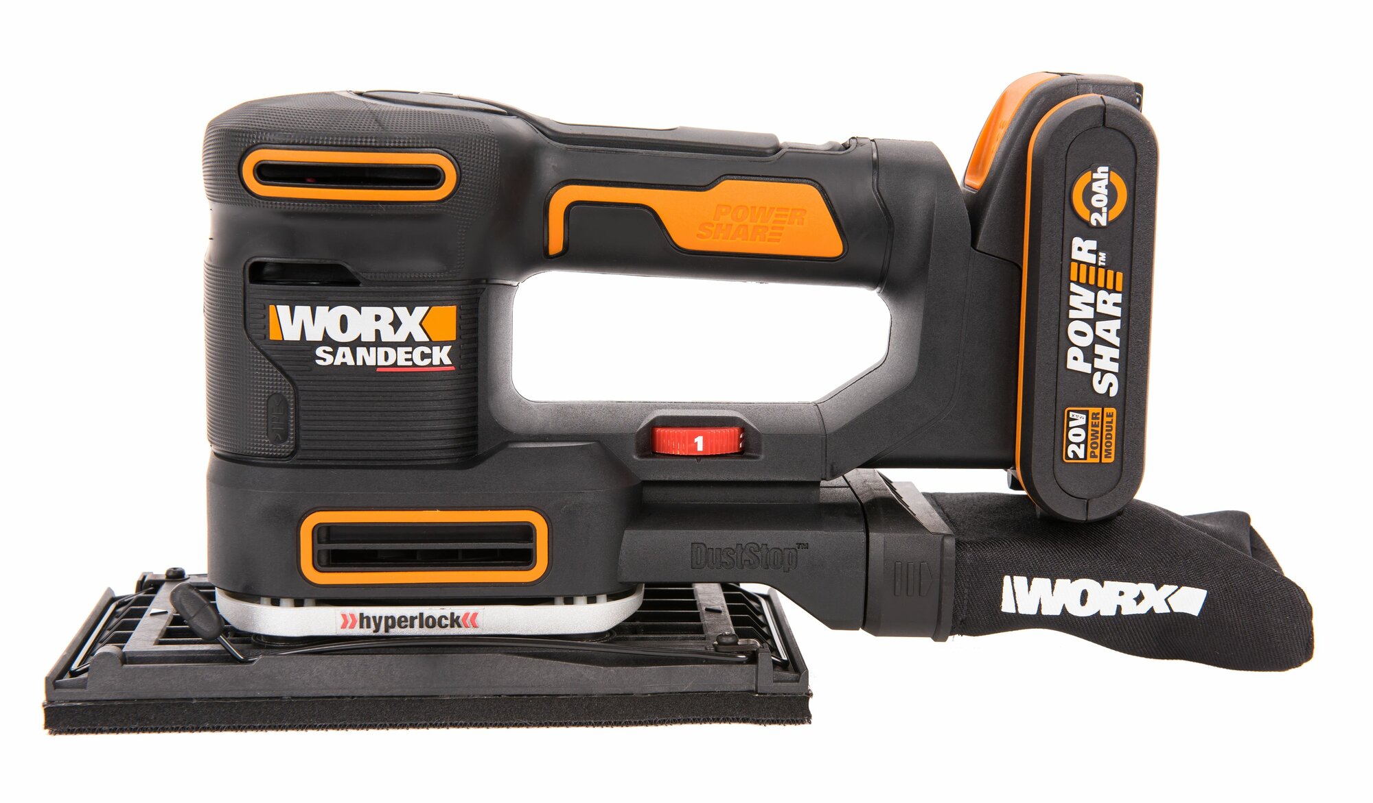 Виброшлифмашина WORX WX820 20В аккумуляторная с 2Ач батареей и 2А зарядкой и кейсом