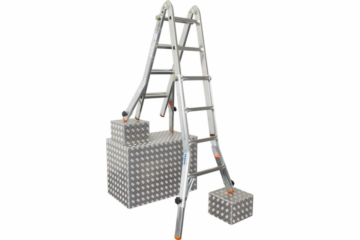 Новая высота Лестница-трансформер 3-х секционная 3×7 ступеней, 3×1,9 м, высота 4,5 м, нагрузка 150 кг, алюминий, новая высота
