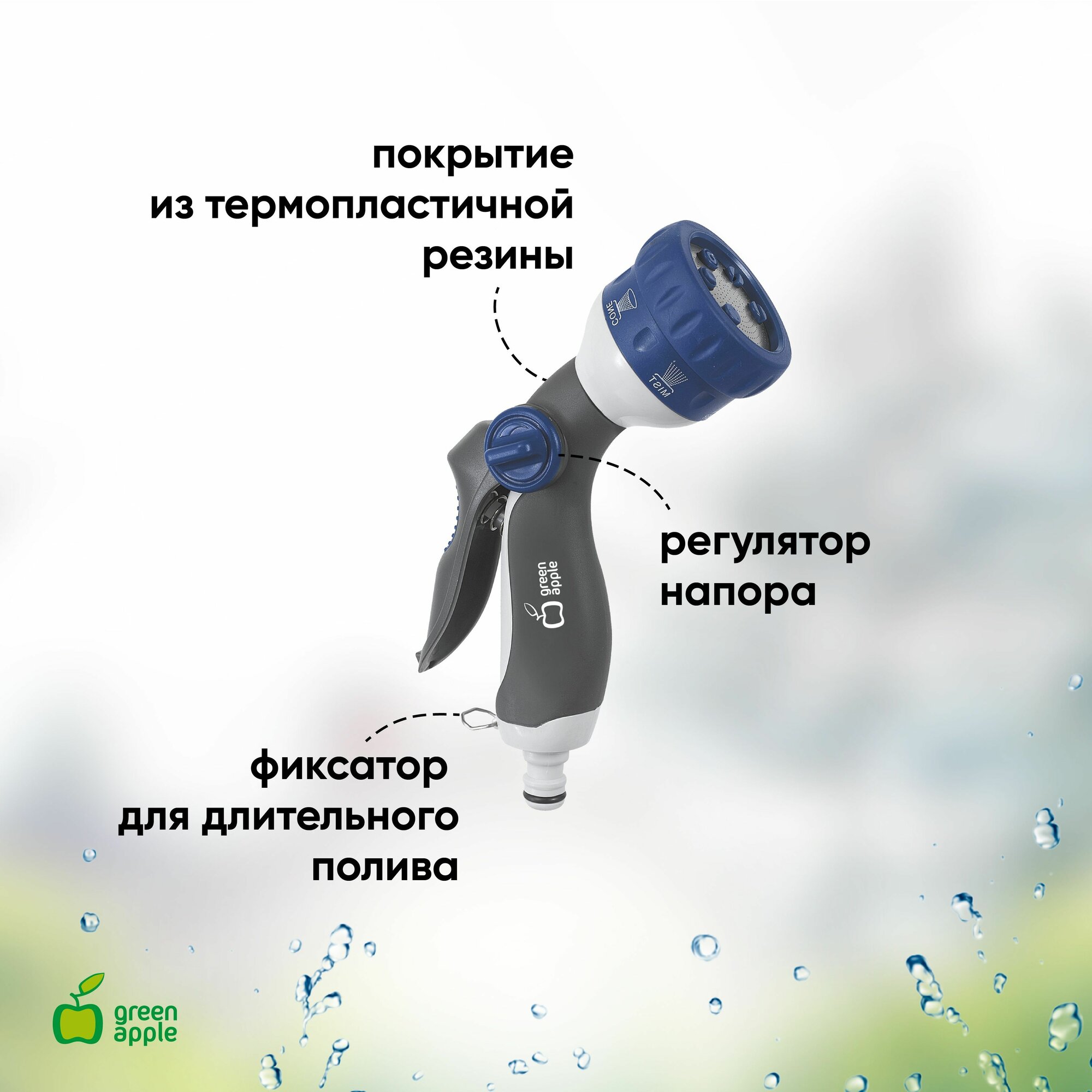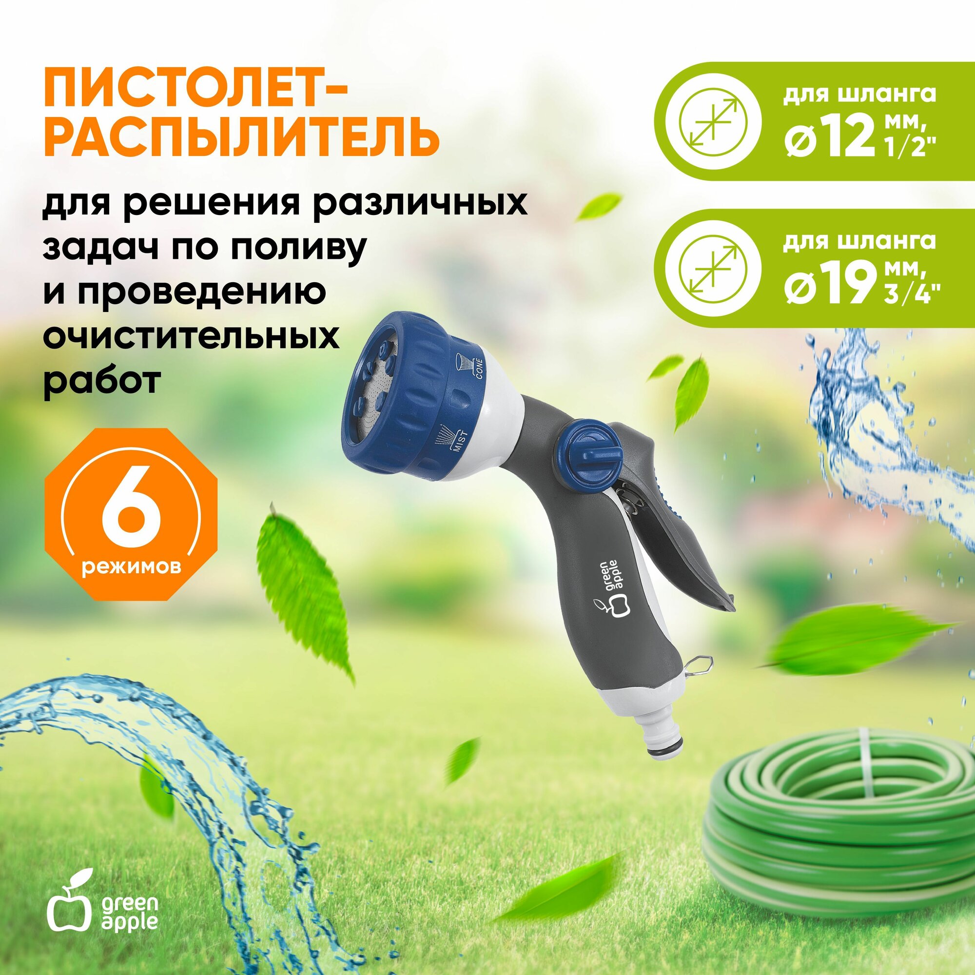 Green Apple GWHM12-038 GREEN APPLE Пистолет-распылитель, пластик, 6 режимов интересное: