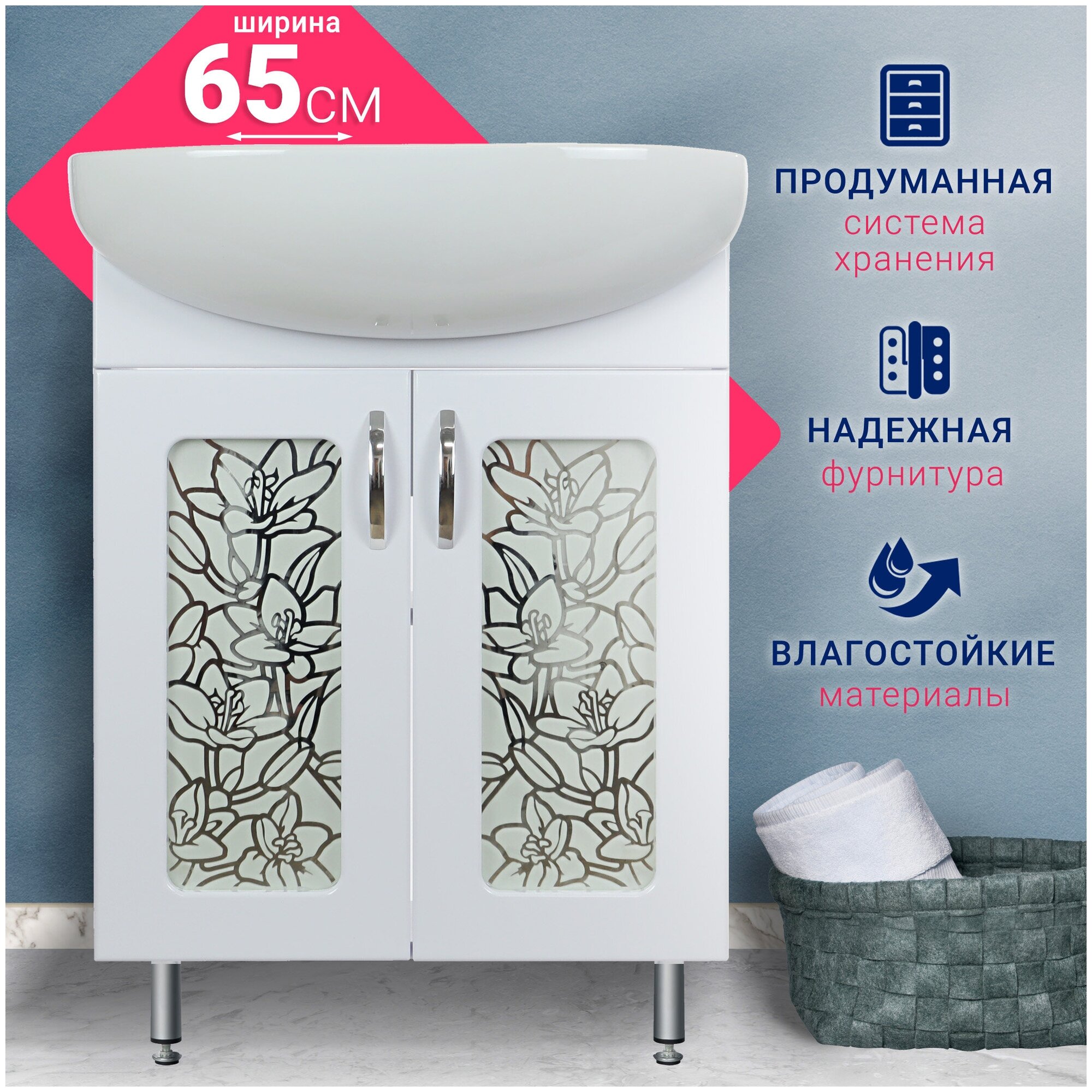 Тумба Орхидея 65 напольная, белая, под умывальник Эрика 61 DORATIZ 9912.812 интересное: