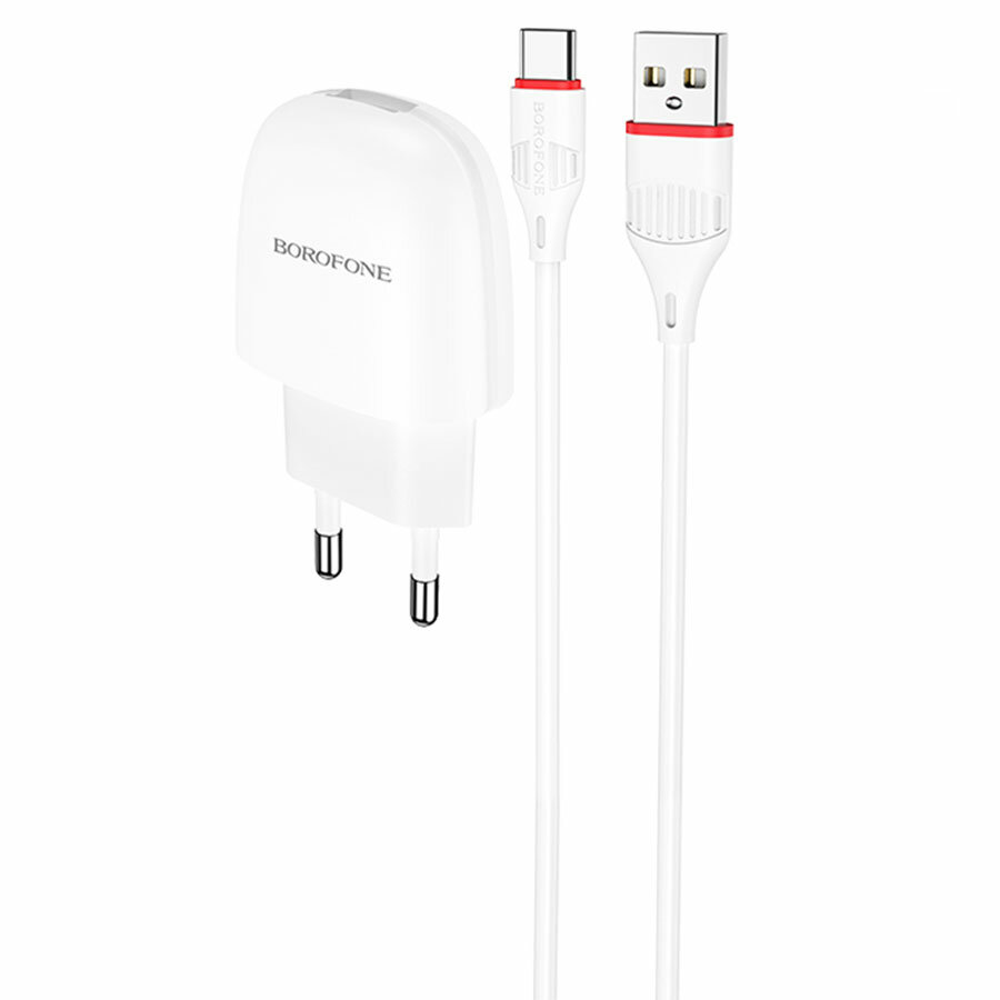 Borofone Сетевое зарядное устройство Borofone BA49A, USB, 2.1 А, кабель Type-C, 1 м, белое