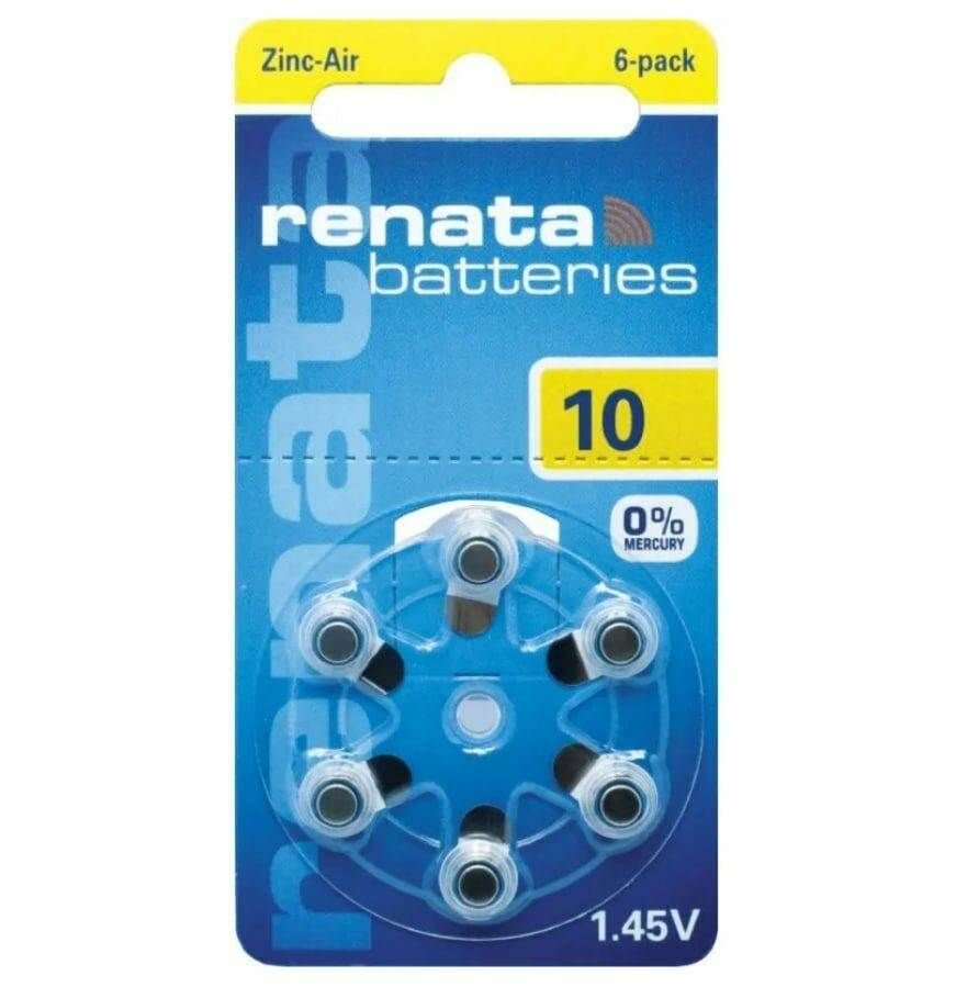Батарейки RENATA 10 1,45 В для слухового аппарата 6шт