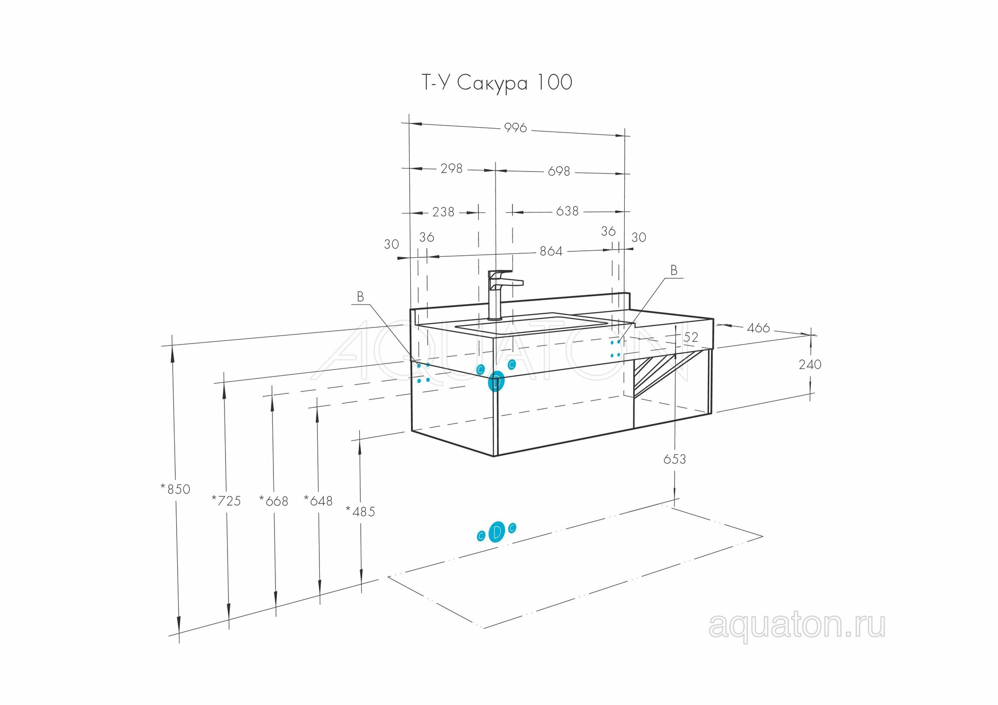 | Комплектация | 2 ящика полного выдвижения; без раковины и смесителя |