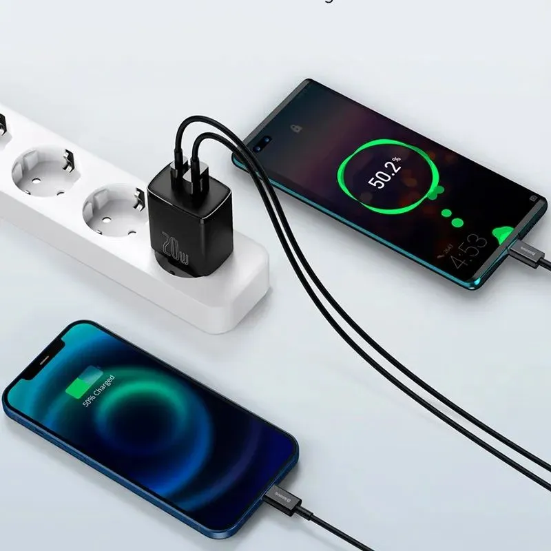 Сетевое зарядное устройство 2 входа, 20 Вт, Baseus Compact Quick Charger, быстрая зарядка для айфон и андроид