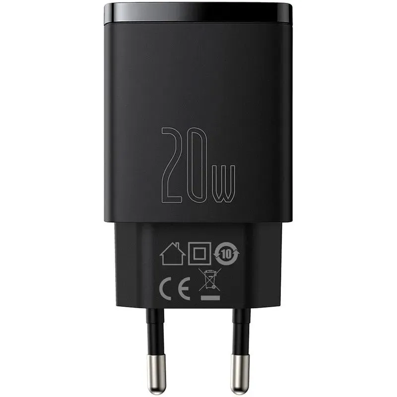 Зарядное устройство Baseus Compact Quick Charger, U+C 20W EU, Черный, CCXJ-B01 с быстрой зарядкой