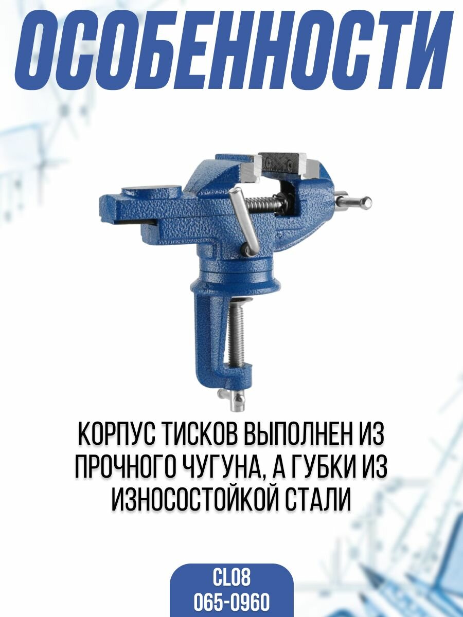 Слесарные тиски DEKO CL08, настольные, поворотные, 60 мм 065-0960