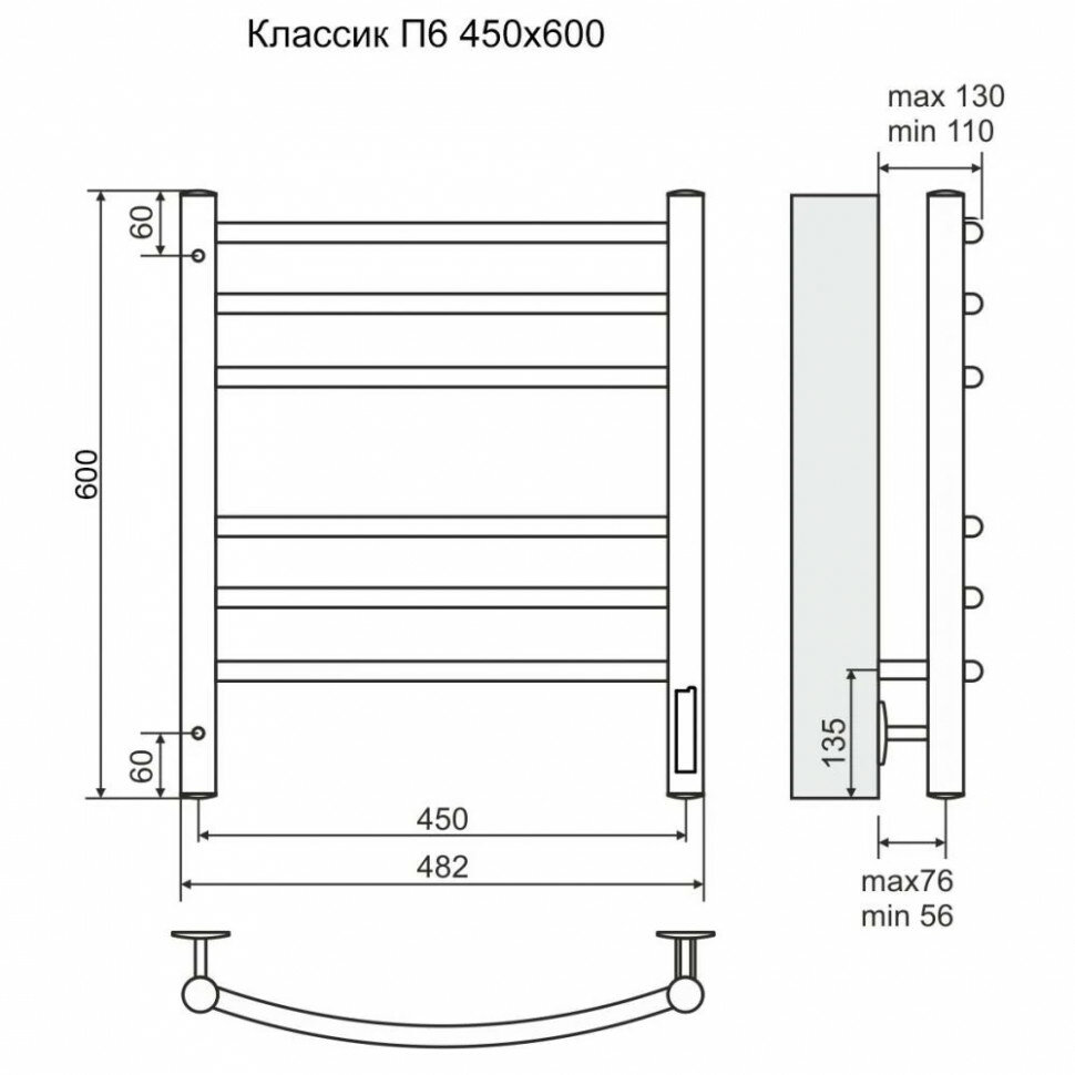 СохранитьПолотенцесушитель TERMINUS Классик П6 (ШВ:450х600) электро, КС 9005 матовый, диммер встроен, правый интересное: