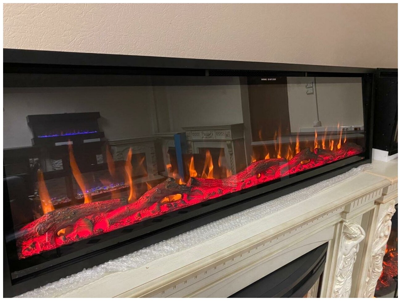 Линейный электрокамин RealFlame Stockholm WT c очагом Saphir 60, кристаллы, обогрев, пульт ДУ (линейный электрический камин)