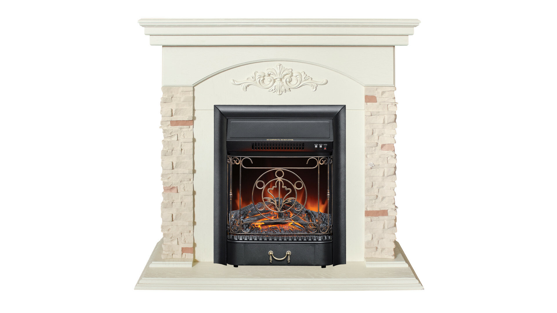 Электрокамин RealFlame Neapolis WT МДФ с очагом Majestic, имитация звука, обогрев, имитация пламени, пульт