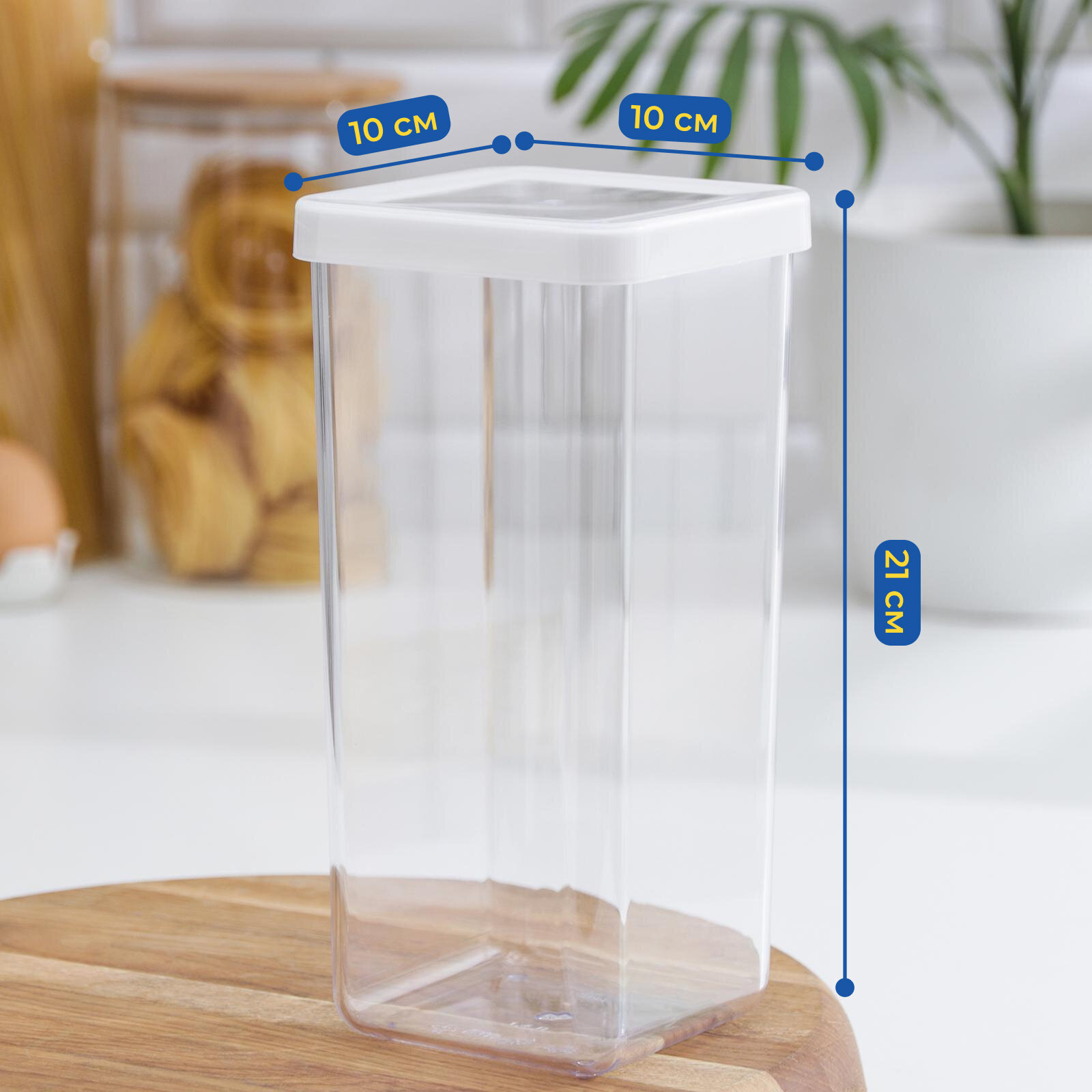 Емкость д/сыпучих продуктов 1,9л Степ квадр. 10*10*28см белый (12) М1294 10*10*28см