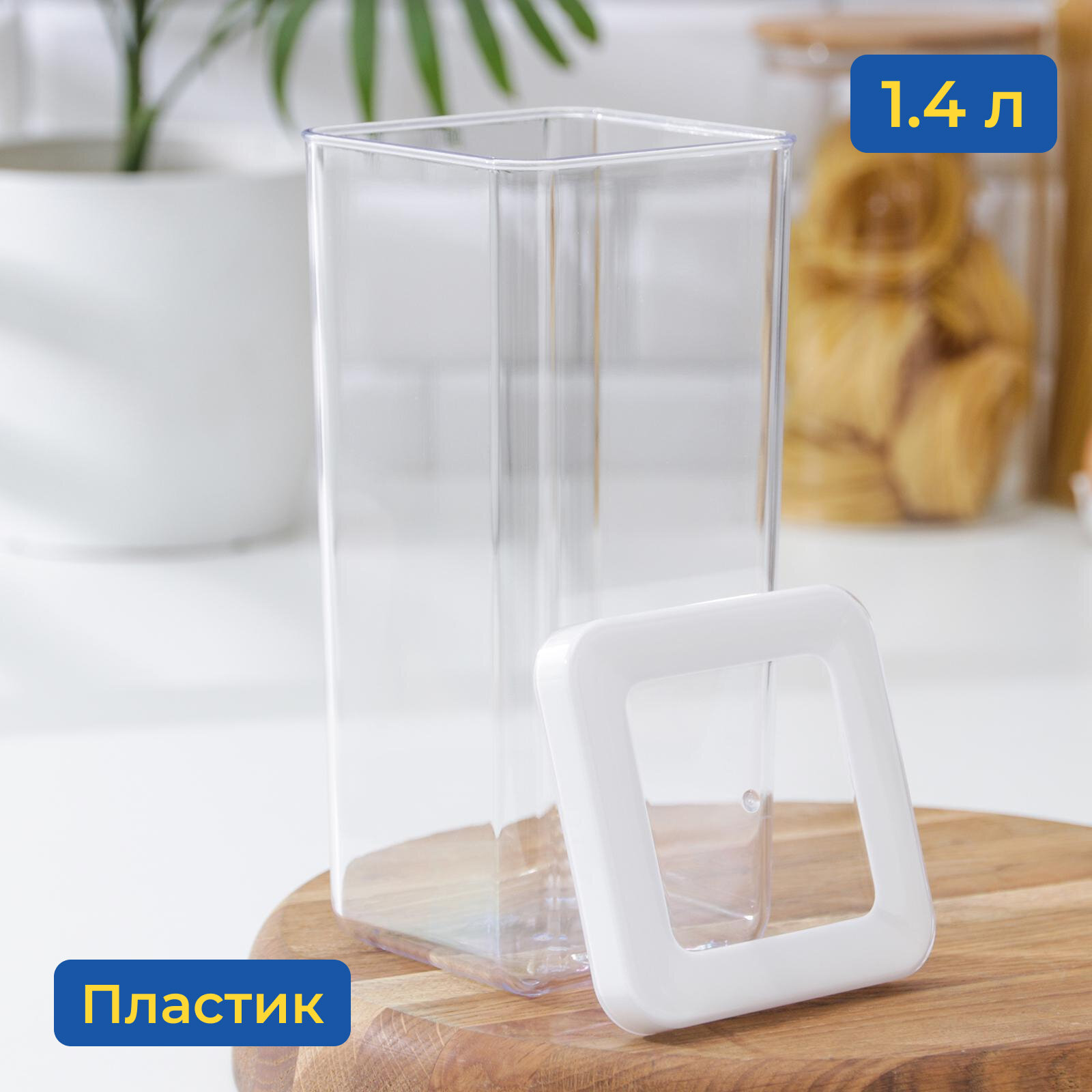 | Плюсы: | Оптимальный размер для пакета муки. Прозрачный, поэтому видно, что внутри и сколько осталось. Квадратный, занимает минимум места в кухонном шкафчике |