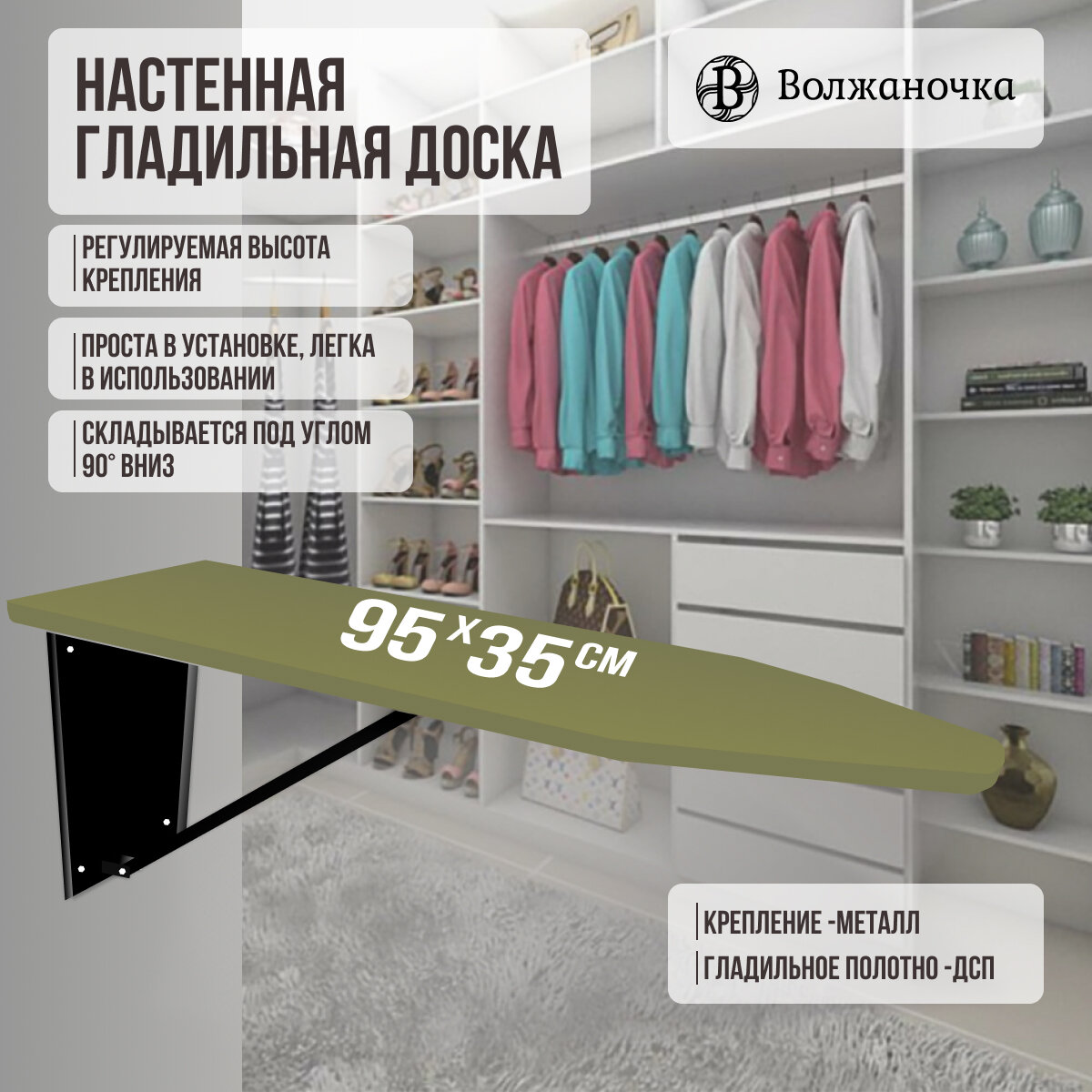 Купить Волжаночка Гладильная доска настенная, размер столешницы 95х35см., цвет оливковый
