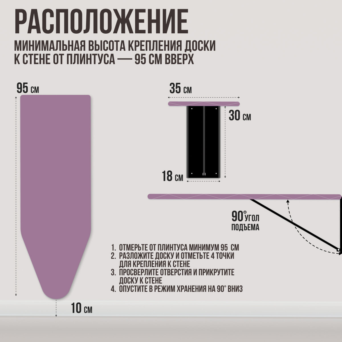 Купить Волжаночка Гладильная доска настенная с подрукавником, размер 95х35см., цвет светло-фиолетовый