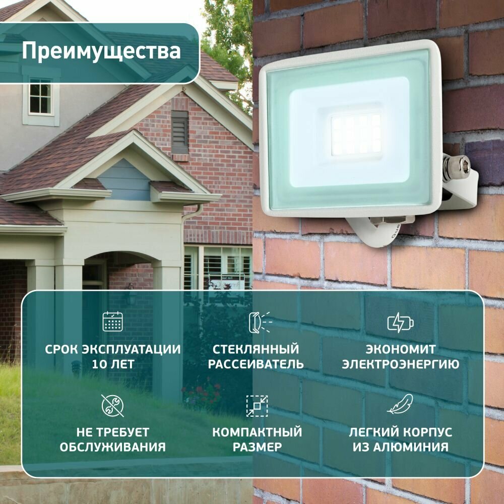 Прожектор светодиодный уличный ЭРА LPR-023-W-65K-010 10Вт 6500K 800Лм IP65 белый арт. Б0054639 (1 шт.)