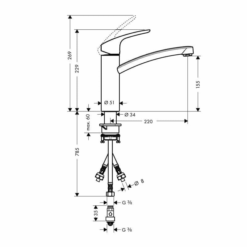 | Длина излива | 220 мм |