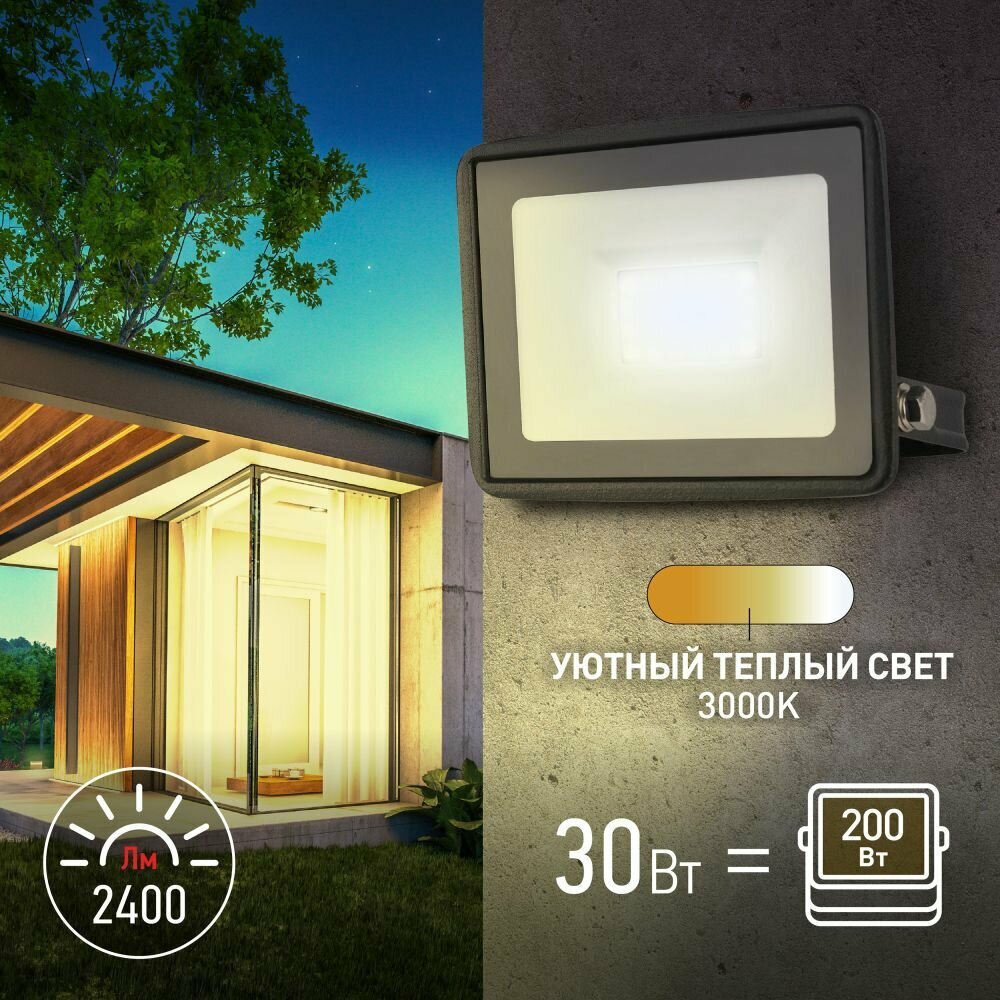 Прожектор светодиодный ЭРА LPR-023-0-30K-030, 30 Вт, свет: теплый белый