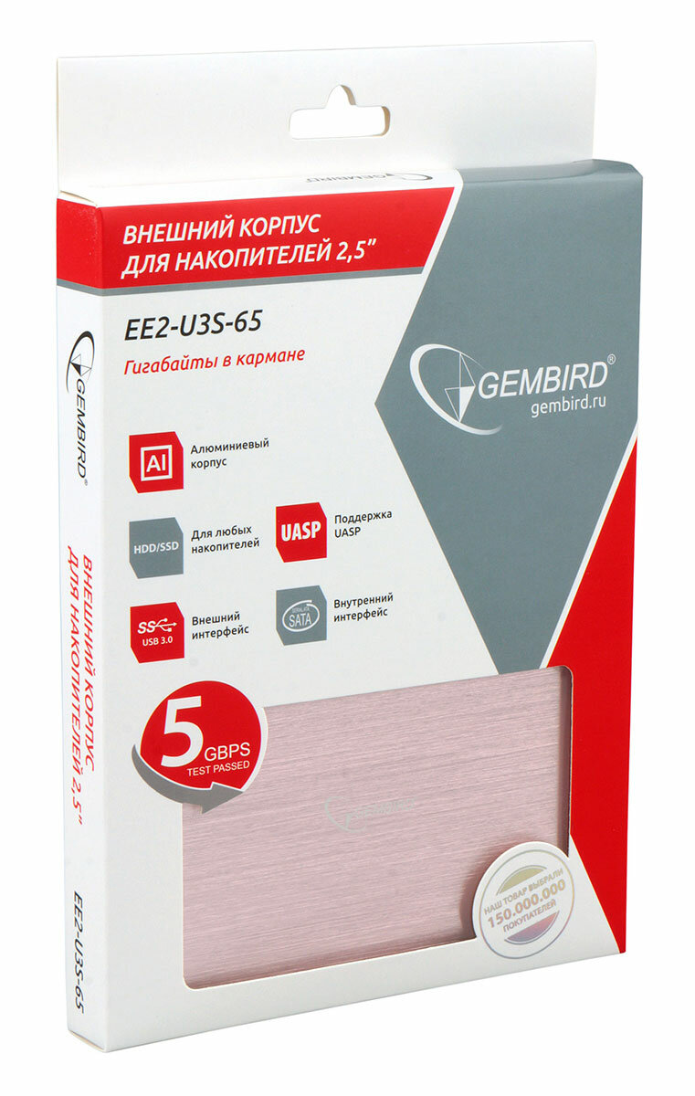 Gembird EE2-U3S-65 Внешний корпус 2.5 розовое золото, USB 3.0, SATA, алюминий