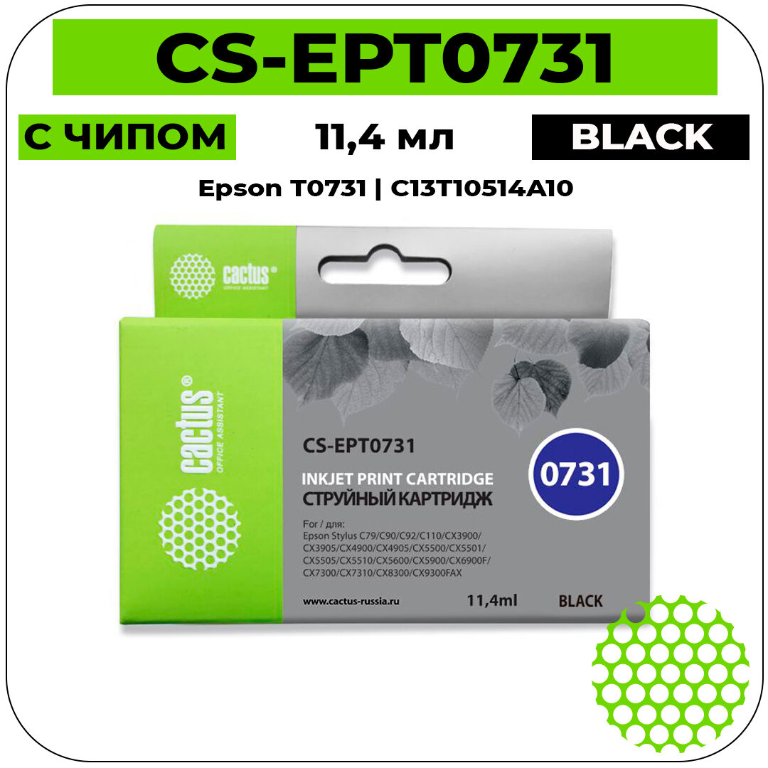 Картридж Cactus CS-EPT0731 совместимый струйный картридж (Epson T0731 - C13T10514A10) 11,4 мл, черный