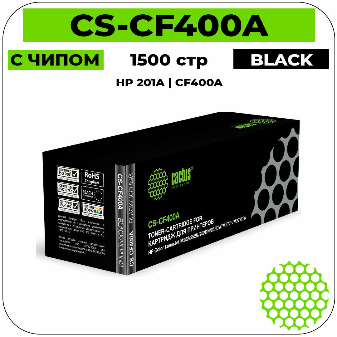 Картридж лазерный CACTUS (CS-CF400A) для HP LaserJet Pro M277n/dw/M252n, черный, ресурс 1500 стр.