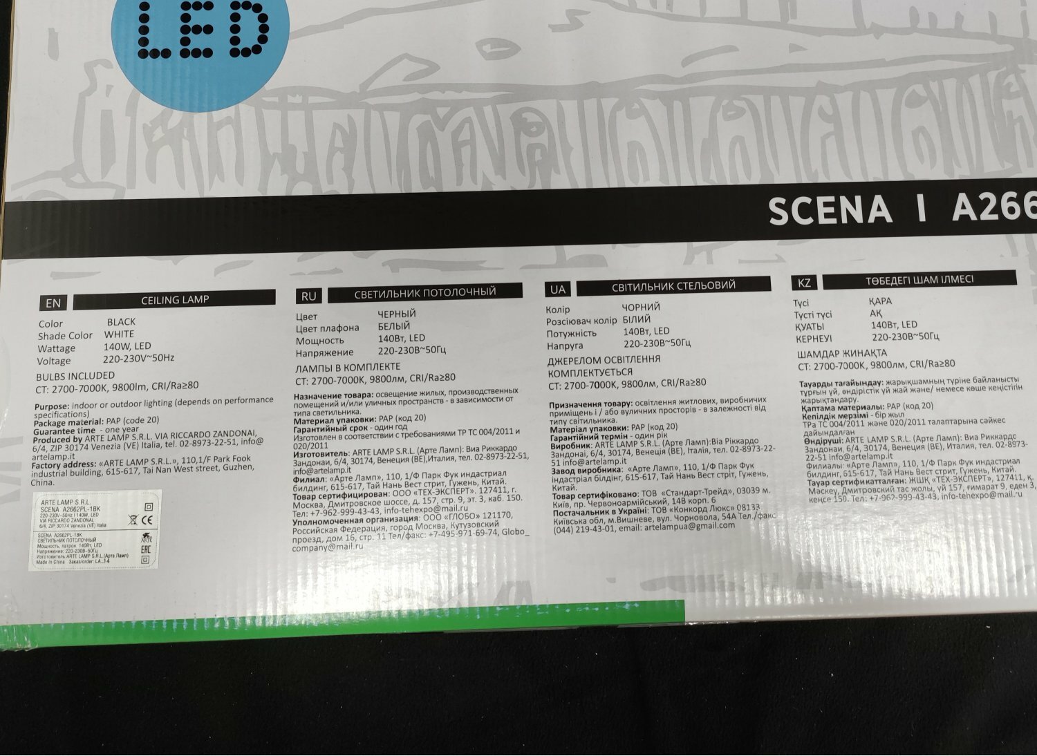 Светильник светодиодный 600*800мм 140Вт Arte lamp A2662PL-1BK SCENA