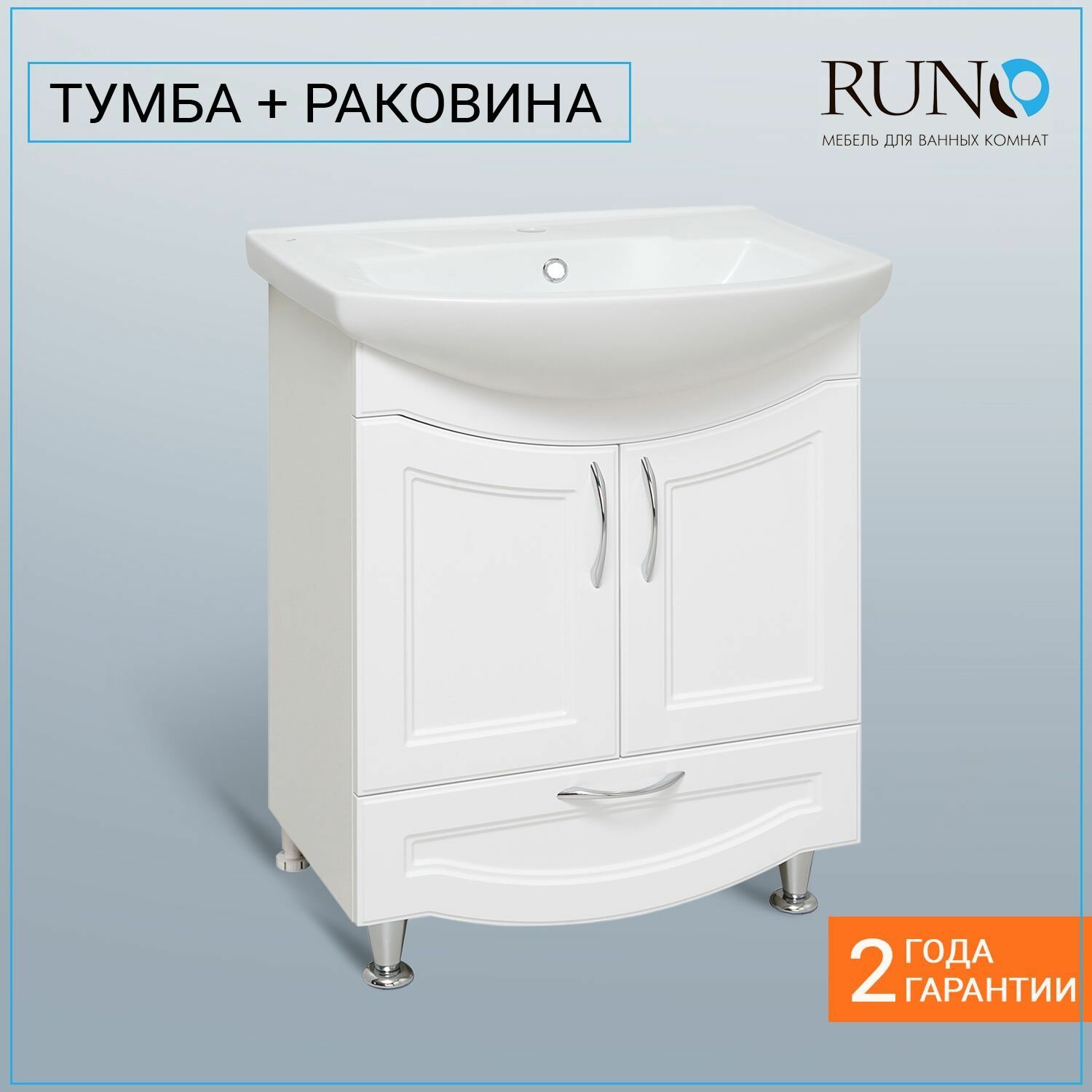 Тумба с раковиной в ванную / Runo / Неаполь 75 / с умывальником Элеганс 75 / тумба под раковину / раковина