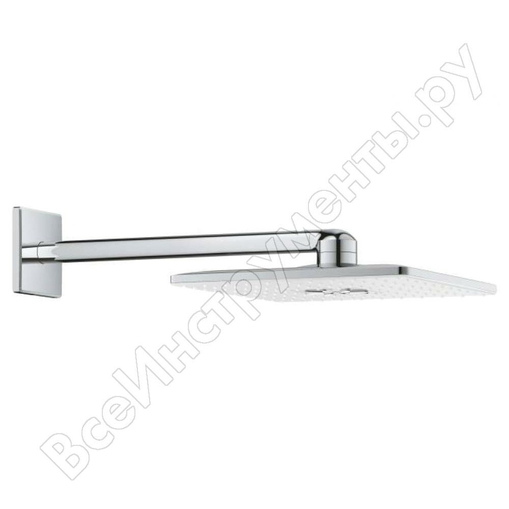 Верхний душ Grohe Rainshower SmartActive 310 Cube, кронштейн 430мм, 2 режима струи, белая луна 26479LS0