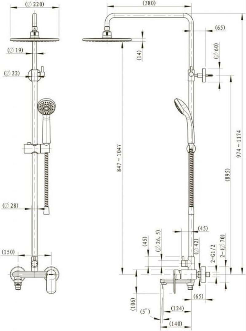 | Дополнительная информация | высота стойки для душа: 1174 мм; диаметр душевой лейки: 80 мм; диаметр верхнего душа: 200 мм |