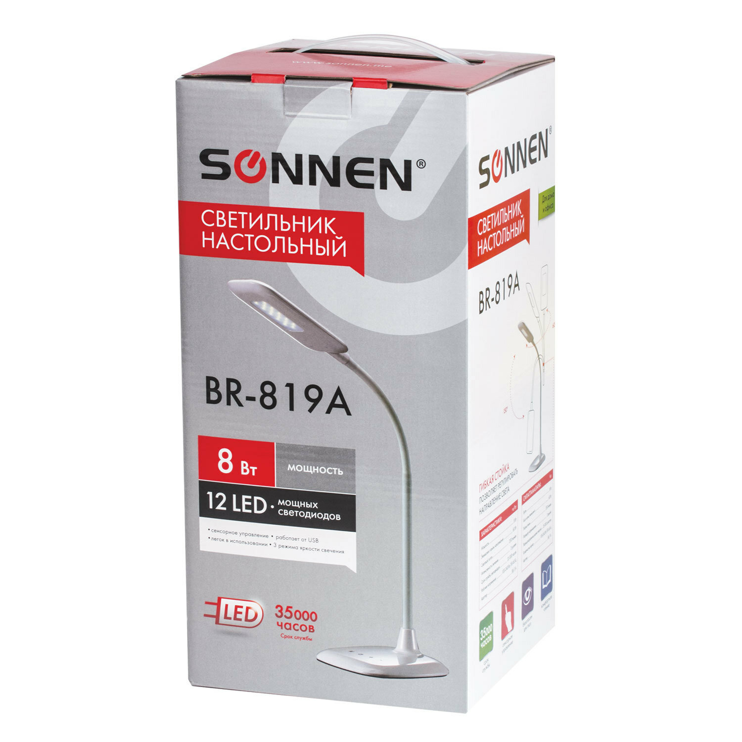 Настольная лампа-светильник Sonnen Br-819a, на подставке, светодиодная, 8 Вт, белый, 236666
