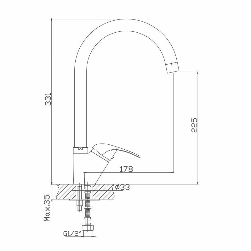 | Длина излива | 178 мм |