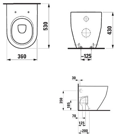 Приставной унитаз Laufen Pro 36х53см, арт. 8.2295.2.000.000.1, без сиденья, универсальный выпуск