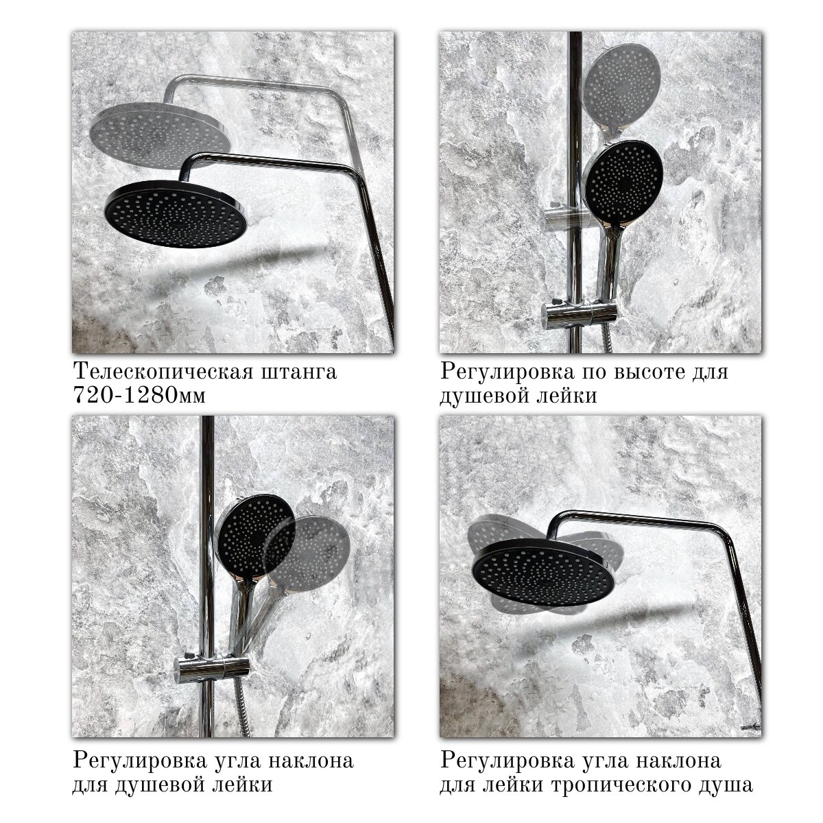 | Особенности | S-образные эксцентрики / аэратор / держатель душевой лейки / регулируемый верхний душ / защита от скручивания |
